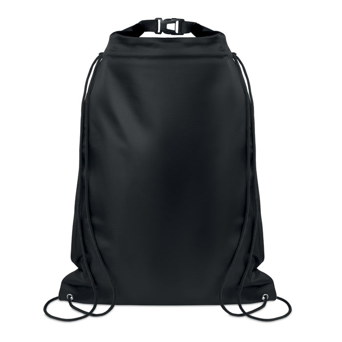 Large waterproof drawstring bag in 190T ripstop polyester. Inside pocket included. Capacity 10L.